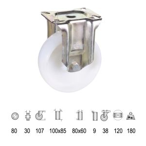 9. Rueda Industrial Nylon Placa Fija 80 mm.